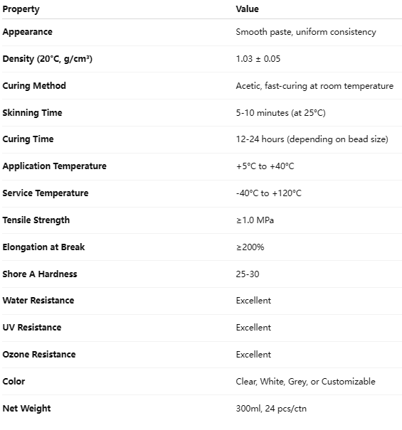 Acetic Fast Cure: Rapid curing at room temperature, forming a strong, durable seal quickly.