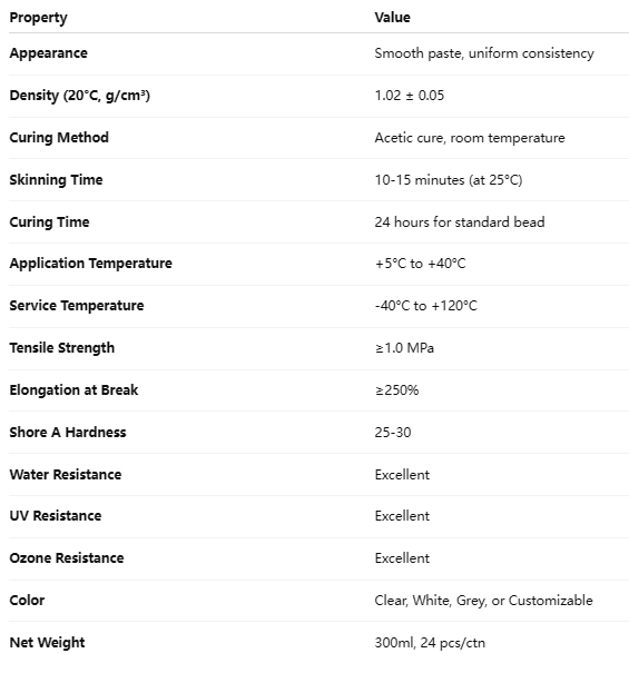 • Acetic Cure: Acetic-based curing at room temperature, forming a strong and elastic seal.