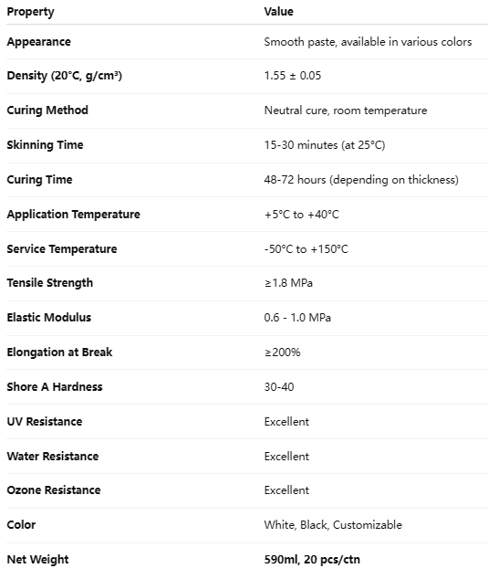 Excellent Flexibility: After curing, the sealant maintains good elongation, water-tightness, and flexibility.