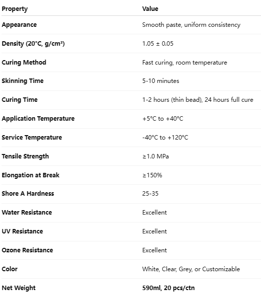 High Adhesion Strength: Bonds effectively to most building materials, including glass, metal, ceramics, tiles, wood, and plastics.